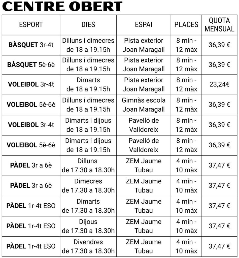 **La quota mensual per dos dies de pàdel a la setmana és de 69,32 €